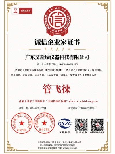 【艾斯瑞】誠信經營示范企業證書