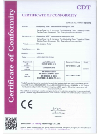 DIN耐磨試驗機CE認證證書