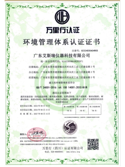 廣東艾斯瑞儀器科技有限公司 廣東艾斯瑞儀器科技有限公司在東莞道滘投產,廠房面積38000平方,是一家擁有著多年試驗機研發、設計、生產的廠家,經驗雄厚并與國內外知名企業合作,產品遠銷世界多個國家和地區。 產品符合標準:ISO、AATCC、ASTM、DIN、EN、GB、BS、JIS、ANSI、UL、TAPPI、IEC、VDE….均可用,產品廣泛適用于:科研單位、質檢機構、大專院校以及電子電器、涂料、箱包、膠粘、手機、紡織、玩具、橡膠、塑料、金屬、電線電纜、制鞋、皮革、包裝、建材、石化、航空…等產業,為材料開發、物性試驗、教學研究、品質管理、進料檢驗等必備。 艾斯瑞儀器將建立起遍布亞、美、歐三大洲的專業研發網絡,建立健全創新機制及知識產權管理平臺,為公司發展奠定基礎,從而成為國內企業中產品馳騁全球的先導者。 公司自成立以來堅決以品質為核心,精美外觀設計為中心,以及認真務實的工作精神,更好服務于廣大客戶并贏得良好的口碑。我們將一如既往,堅持以“誠信經營”為本,“品質至上”為主,服務至上為宗旨,用創新的思路和技術設計產品,保證優良的品質,品質管理、進料檢驗等必備。